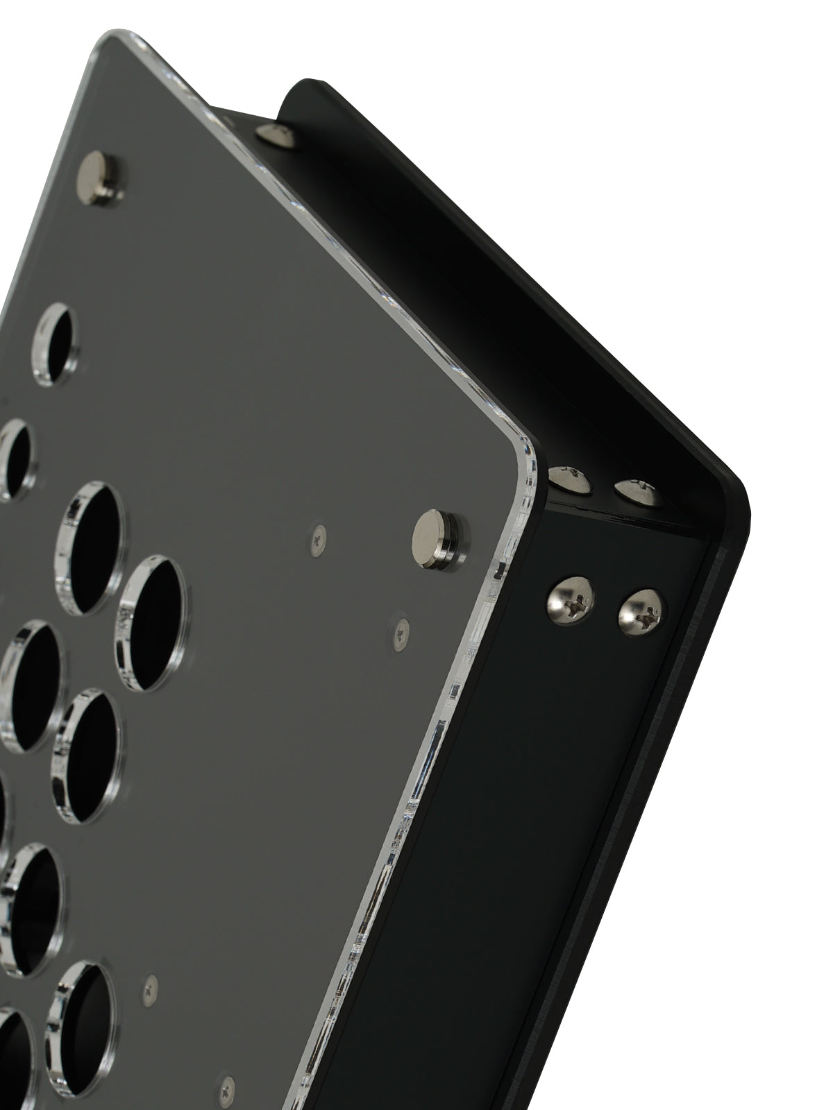 ・組立のアクリル板がぐらつく事がないよう、筐体部分は溶剤接着加工で剛性抜群